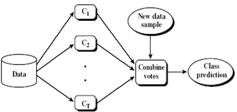 مرحله ی دسته بندی: هر نمونه را به همه ی دسته بندهای ساخته شده می دهیم و ماکزیمم تعداد رای ها را در نظر می گیریم. (رای اکثریت) برای داده های پیوسته میانگین جوابهای دسته بندها.