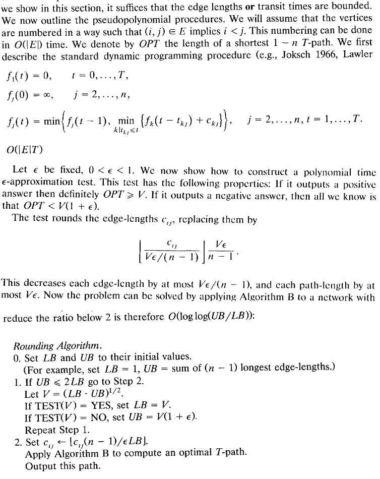 دو الگوریتم بر حسب طول مسیر و وزن مسیر داده است که اولی از مرتبهی تعداد یالهای * حداکثر طول یال و دومی از مرتبهی تعداد یالها * هزینه مسیر بهینه است. (هر دو dp). الگوریتمهای دقیق هستند برای حالتی از مسأله که ماکسیمم طول مسیر مشخص باشد.