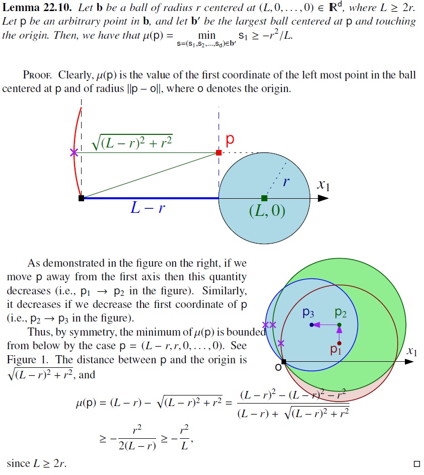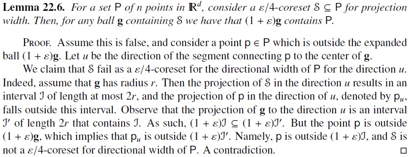 جواب: برای هر کدام از توپها یک توری میسازیم که اندازه آن 2r و هر خانهی آن r*epsilon/sqrt(d) است که چون قطر هر خانه sqrt(d) برابر ضلع آن است فاصله هر نقطه حداکثر انقدر است. یعنی اگر نقاط را به نزدیکترین رأس توری رند کنیم حداکثر خطای ما این مقدار خواهد بود.