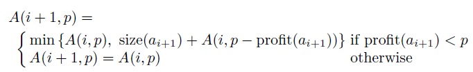 S(i,p) = به ازای هر i بین 1 تا n و هر p بین 1 تا nP : زیرمجموعه ای از اشیای 1 تا i که سود p دارد و اندازه ی آن کمینه است.