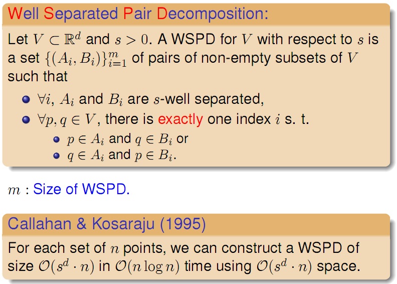 ساختمان داده ای که به کار می بریم یک درخت است که در هر راس آن یک زیرمجموعه از ابرصفحه ها است. ریشه کل صفحه هاست. به ازای هر گره از درخت، به صورت بازگشتی زیردرخت آن را می سازیم. فرض کنید کلا n ابرصفحه داشته باشیم. اگر به ازای یک ثابت سراسری n0 بدانیم n<= n0 است این گره یک برگ است و بازگشت تمام می شود. در غیر این صورت ست سیستم (کل صفحات، صفحاتی که اشتراک یک d-simplex در صفحه اقلیدسی d بعدی دلتا با آنها تهی نباشد) می سازیم. این یک زیرسیستم از ست سیستم است که بعد VC آن حداکثر O(d^3 log d) است. پس بعد VC ست سیستم ما حداکثر O(d^3 log d) است که O(1) است چون d را ثابت فرض کردیم. پس قضیه اپسیلون-نت نتیجه می دهد که با نمونه گیری تصادفی در زمان O(n) می توانیم یک 1/r-نت بسازیم برای ست سیستم مان که اندازه اش O(r log r) است. آن را به simplex هایی با استفاده از روش بعد تجزیه می کنیم که به آن "bottom-vertex simplicial decomposition" می گویند.