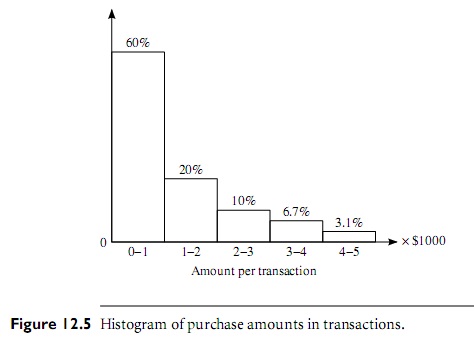 کل بازه ی 0 تا 5 روی محور x را که جمع کنیم 99.8 می شود یعنی 0.02% داده ها خارج این بازه و پرت هستند. چون داده ها نامنفی اند پس مربوط به بیشتر از 5 است (یعنی 5000$) = داده های پرت